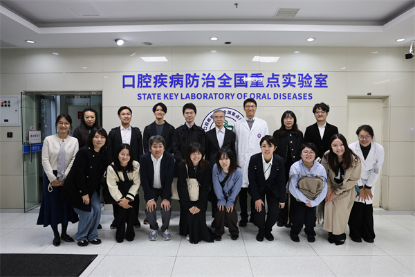10月29日,日本青年科技人员访川代表团到访我院,四川省科技交流中心相关领导陪同访问。我院袁泉副院长对代表团一行表示热烈欢迎。代表团参观了我院口腔疾病防治全国重点实验室,深入了解我院在口腔医学基础研究、技术创新和成果转化方面的最新进展与发展动态。随后,代表团参观了华西口腔医学博物馆,全面领略我院百年发展历程与深厚的口腔医学文化底蕴。在座谈交流环节,双方围绕口腔医学前沿技术、人才培养模式、科研合作机制等重点领域进行了深入探讨。