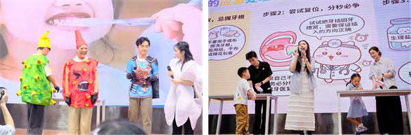 在舞台表演环节,实验室党支部师生带来了《齿间有科学》《我是牙齿小卫士》两个精彩节目。表演以轻松活泼、通俗易懂的方式,将刷牙习惯、龋齿预防、牙齿保护等知识融入情景演绎中,寓教于乐,赢得了现场小观众的阵阵掌声。
