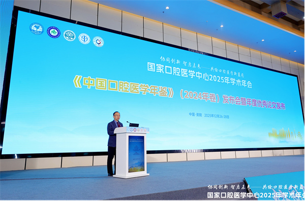 2025年12月27日,《中国口腔医学年鉴》(2024年卷)在国家口腔医学中心2025年学术年会上正式发布,紧扣年会“协同创新智启未来——共绘口腔医学新蓝图”的核心主题,展现了2024年度我国口腔医学的发展与成就。来自全国口腔医学领域的专家学者、行业同仁齐聚现场,共同见证发布。会议由我院党委副书记林云锋主持。