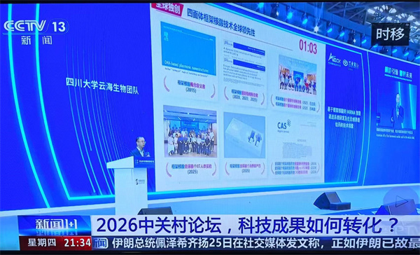 2026年3月26日,2026中关村论坛年会——第九届中关村国际前沿科技大赛总决赛在北京中关村国际技术交易中心落下帷幕。经过激烈角逐,我院林云锋教授率领的四川大学云海生物团队凭借“基于框架核酸的miRNA智能递送系统研发及在无创渗透给药的技术探索”项目,从全球2100余个前沿技术项目中脱颖而出,荣获大赛总决赛亚军。